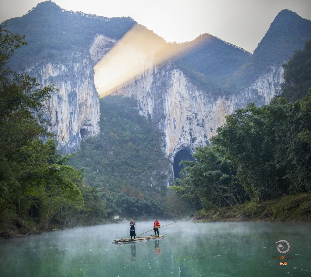 拍摄时间:2020年11月11日,拍摄地点:安顺市紫云县格凸河景区。 紫云县格凸河属于国家4A级旅游景区,这里风光秀丽,宛如世外桃园。每当旭日东升,时常出现万丈光芒穿洞而过,照在格凸河上,被当地人称之为天地神光,十分奇特罕见。
