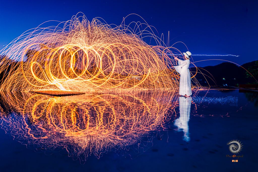 夜色中的靓影在绚丽的光绘中更加神秘妩媚