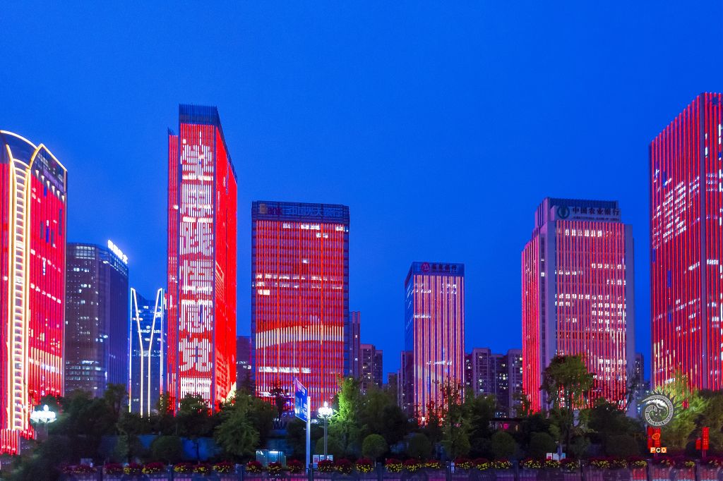"百年征程波澜壮阔,百年初心历久弥坚。",100年的征程中,中国共产党团结带领人民取得了举世瞩目的伟大成就。6月28日晚间,贵阳观山湖区贵州金融城亮屏“庆祝建党100周年主题大型楼幕灯光秀”,庆祝中国共产党建党百年华诞。 夜幕降临,贵州金融城群楼相继亮出“庆祝中国共产党成立100周年”、“百年征程波澜壮阔,百年初心历久弥坚”、“伟大的中国共产党万岁”、“伟大的中国人民万岁”等标语,其鲜明的底色、振奋人心的内容,在观山湖金融城构成最亮丽的一道风景。