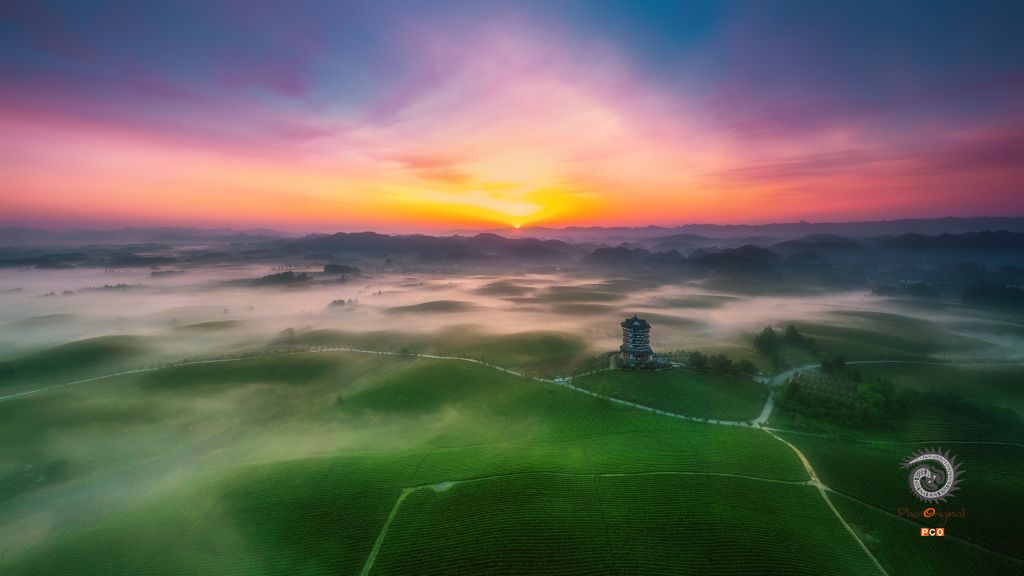 晨曦中的茶园一望无际,如梦如幻,如诗如画。