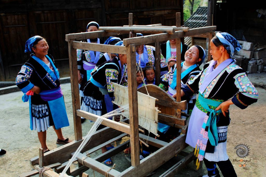 福泉仙桥麒麟山苗族同胞开心地织布