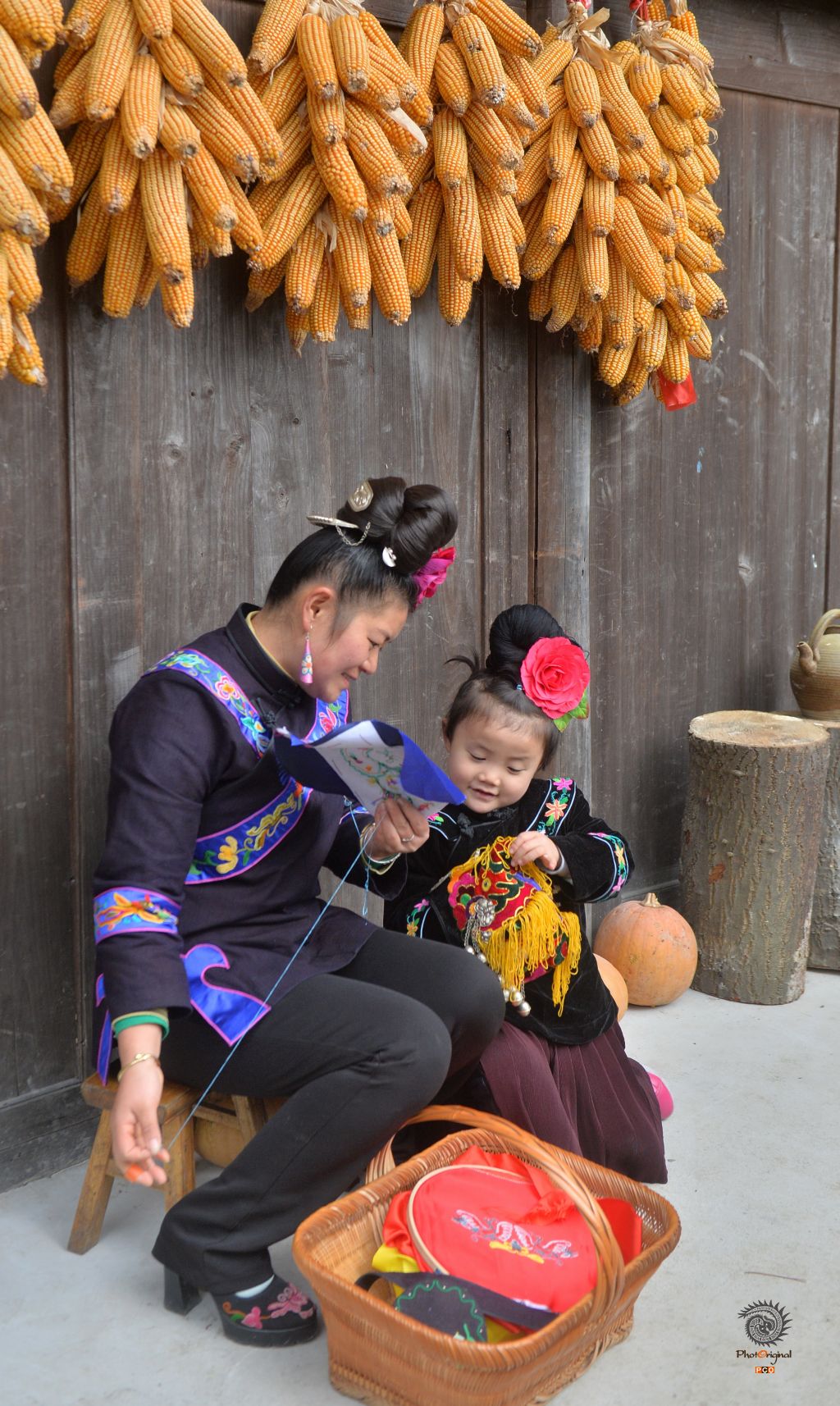 贵州省雷山县丹江镇猫猫河村,一苗族妇女在教小女孩学苗绣。