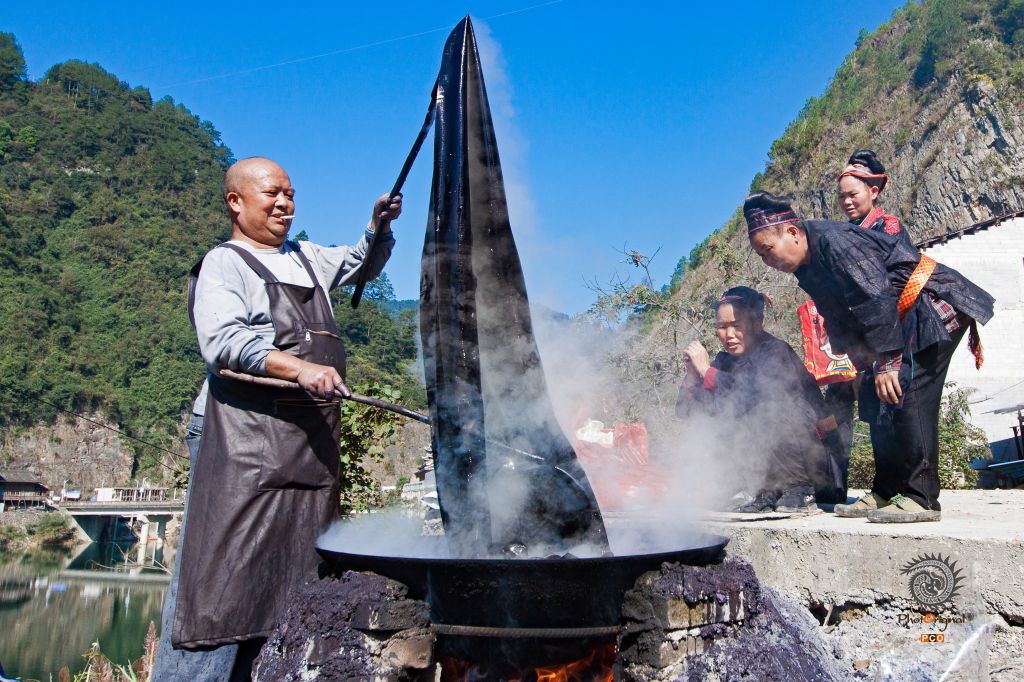 2020年11月8日摄于剑河南哨张师傅在给苗族妇女染布。