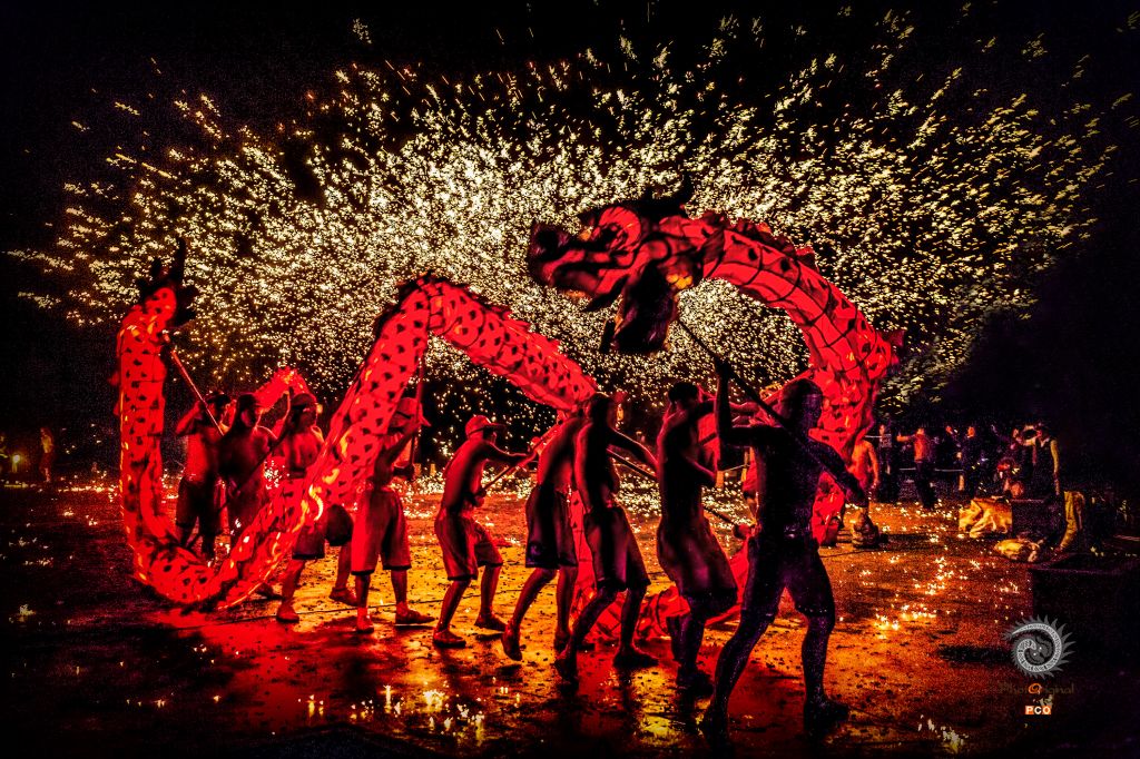 普定城关镇人廖祝山发明用熔化的铁水冲龙,这样冲龙惊险刺激、奇美无比。 铁水冲龙在普定被沿袭下来。