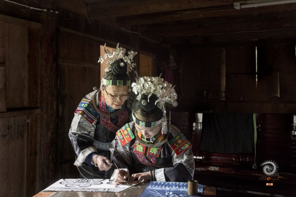 苗族习俗,每位母亲都必须教会自己的女儿制作蜡染,世代传承,古老的蜡染技艺因此得以保留下来。