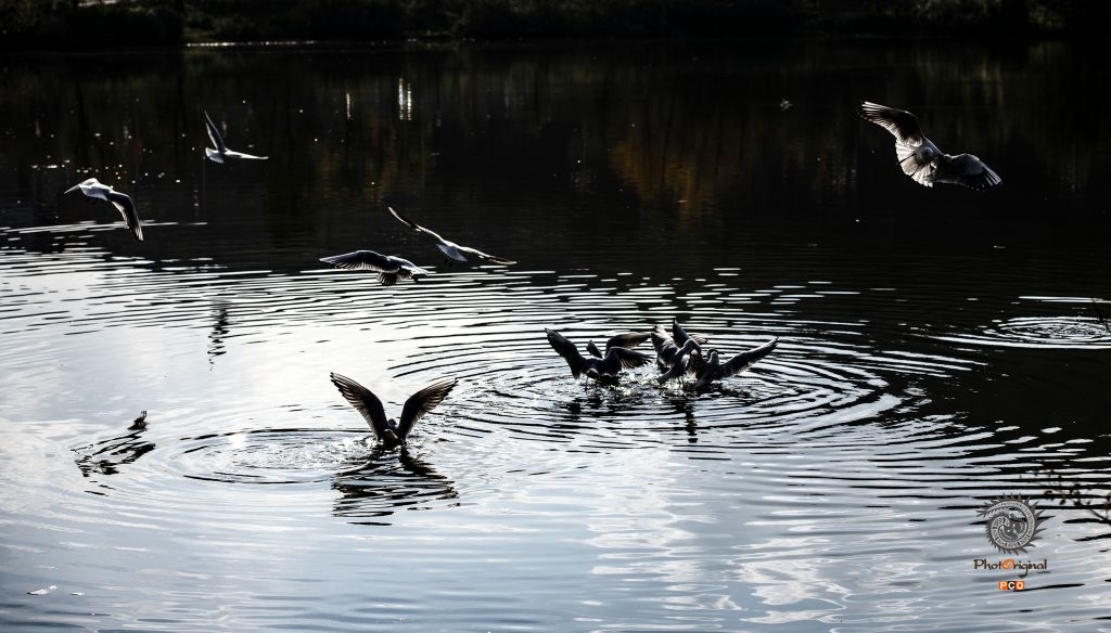 2020年11月7日,一群北来的海鸥盘州市城区的南湖戏水。