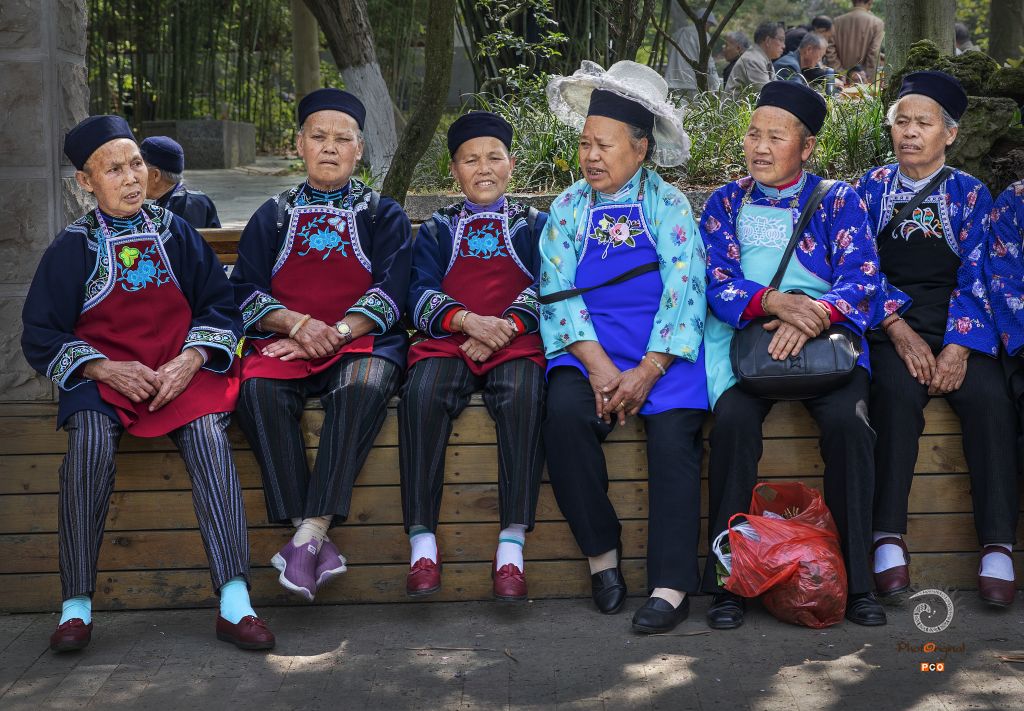 20210328拍于贵阳花溪公园布依族大妈坐在公园里面聊天,休闲