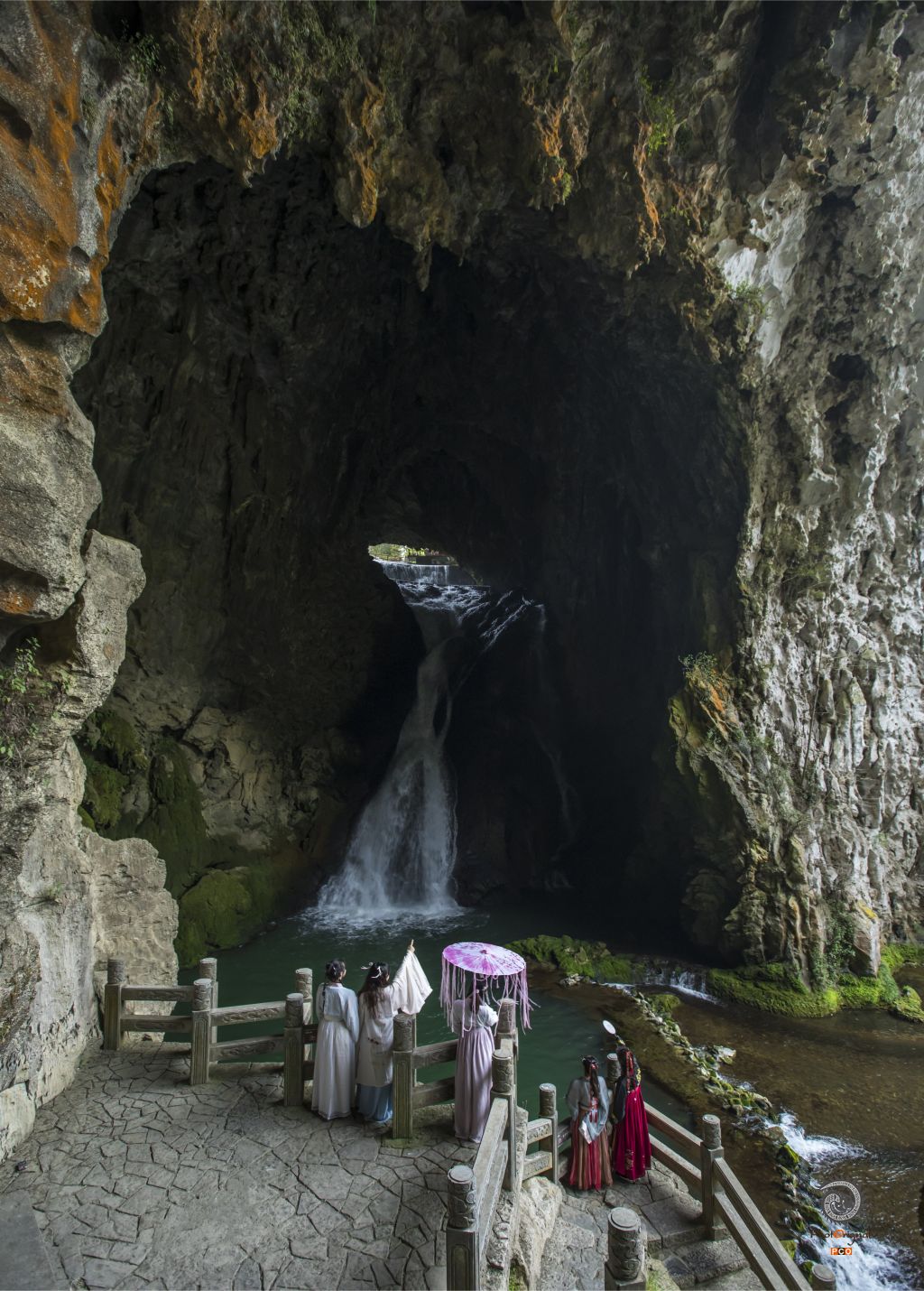 油菜河水从龙宫天池流下,形成龙门飞瀑