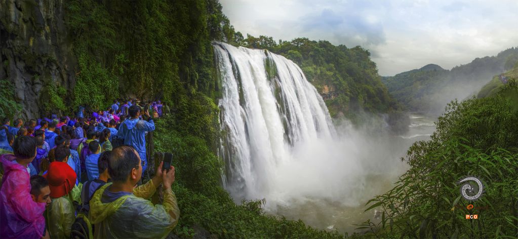 拍摄时间:2015.10.6日,拍摄地址:贵州安顺市黄果树景区。 黄果树大瀑布雄伟壮观,游人似潮。