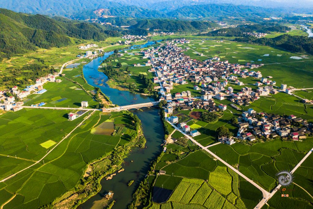 2019年7月24日拍于贵州省锦屏县敦寨镇亮司村。盛夏时节,亮江河畔绿意盎然,民房分布在两岸的田园间,宛若一幅水彩画。