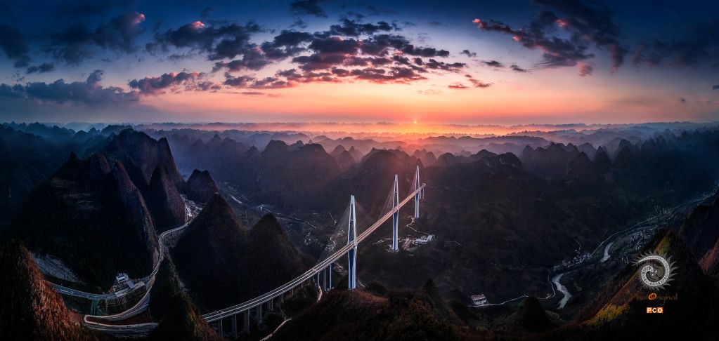 晚霞映照特大桥