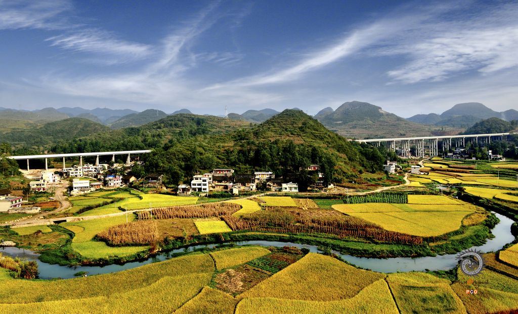 作品摄于2014年10月贵州省瓮安县平定营。金秋时节,金色的稻谷衬托高速公路更加美丽