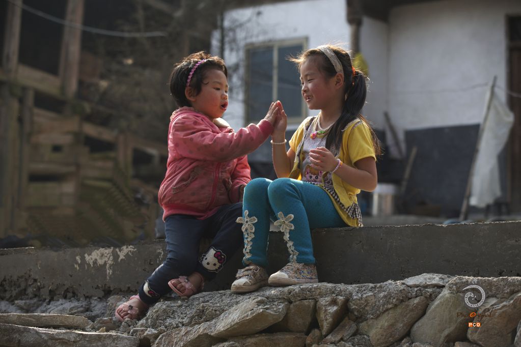 拍摄于贵州从江县加榜乡,温暖的午后,两个邻家女孩坐在屋前台阶上玩着拍拍手的游戏,天真纯朴,拍下这幸福时光的画面
