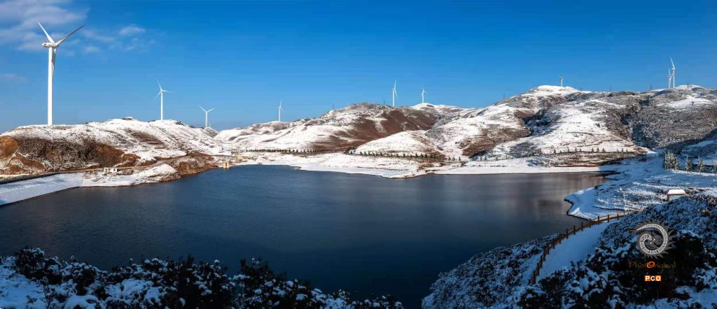 雪后天晴,天池像一块蓝宝石镶嵌在乌蒙大草原上,美得不要不要的。