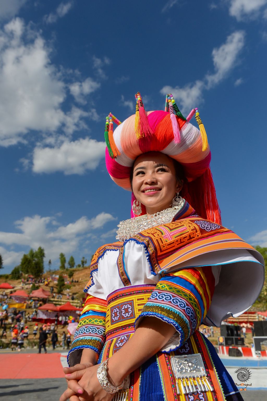 在每年一度的贵州水城县南开三口塘跳花节活动中,一位长相甜美穿着手工苗绣盛装的苗族女青年。