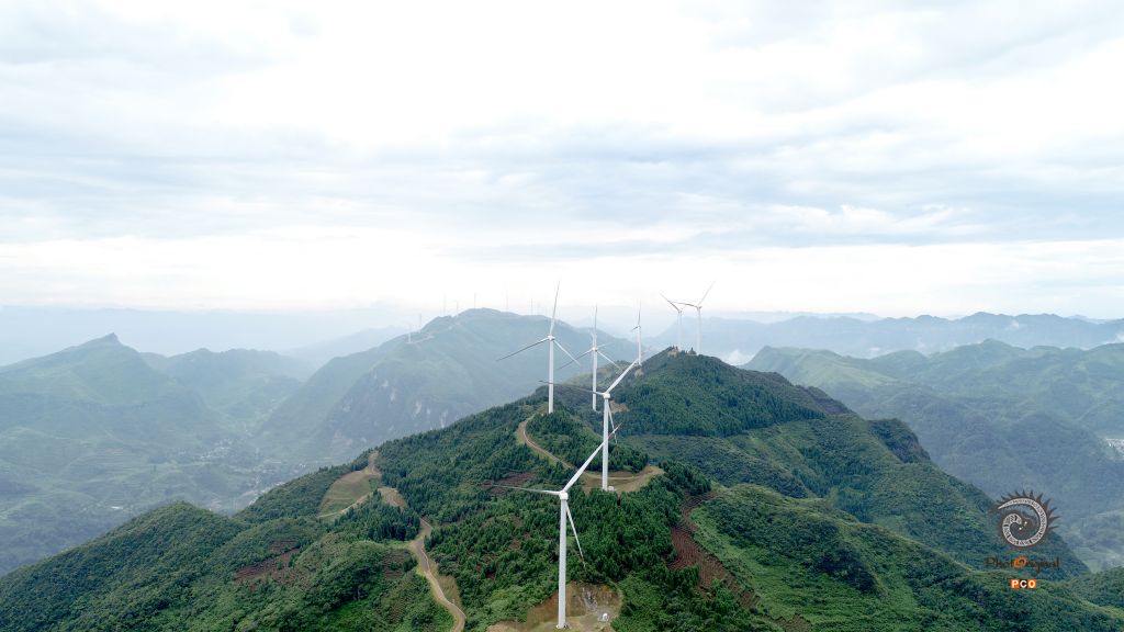 在贵州省纳雍县曙光镇坡头村,一排排风力发电机依山而建,不但为脱贫保驾护航,更是形成一道绝美景观。 拍摄时间:2021年7月19日 地 点:贵州省纳雍县曙光镇坡头村 摄 影 师:谢健锋 电 话:15808574575
