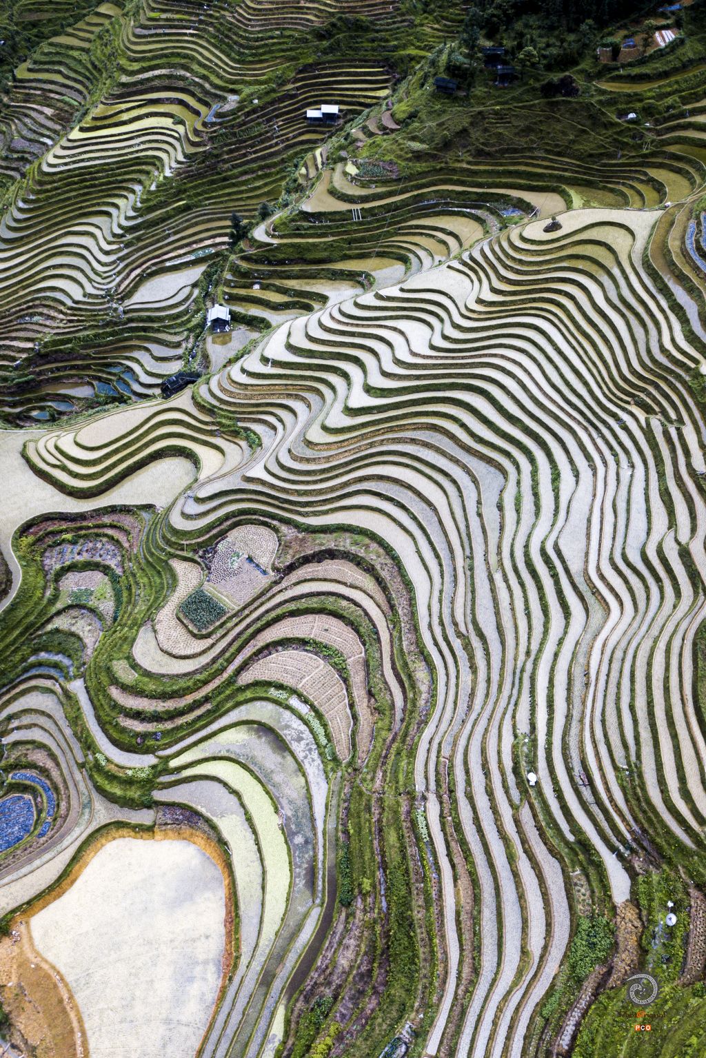 2021年5月30日拍于贵州省从江县加鸠乡加页梯田。初戛时节,从江县月亮山区的梯田蓄水丰盈,层层叠叠,田埂蜿蜒,线条分明,构成一幅幅迷人的春末画卷。