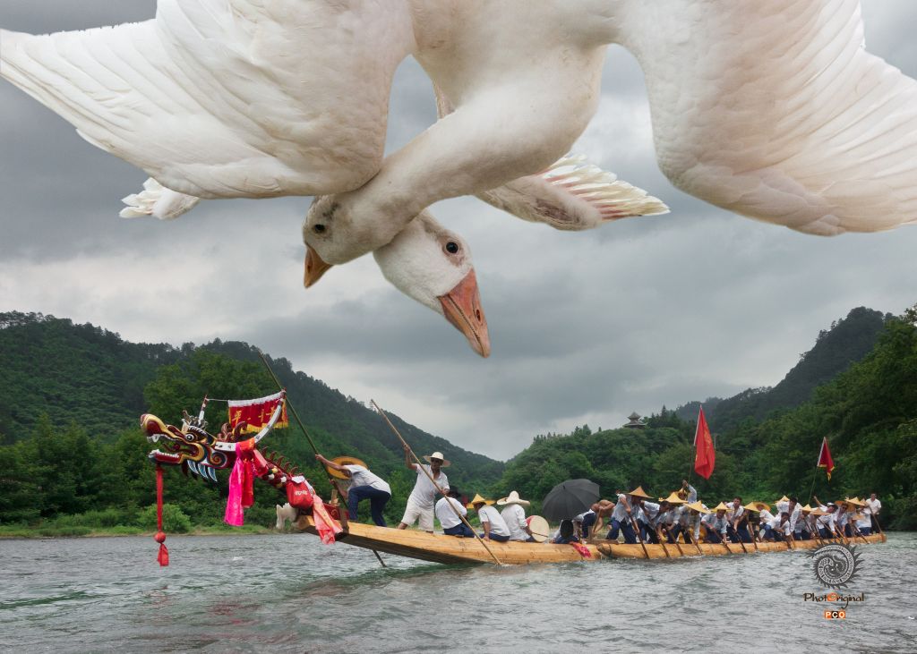 2019年拍摄于贵州台江施洞独木龙舟节,准备参加竞赛的勇士们正在逆流中奋勇向前。