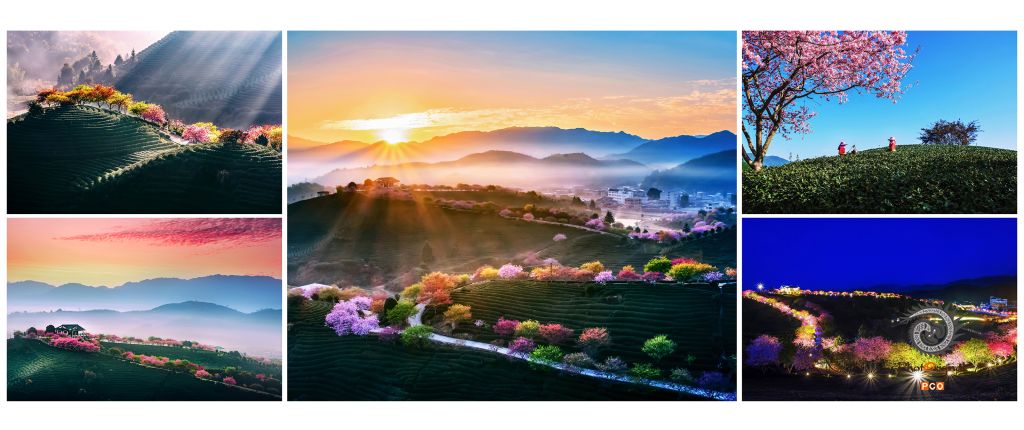 早春,福建省漳平永福镇上千亩茶园里深红、粉红、碧绿、浅黄各种颜色的樱花相继盛开。山坡上,一树树樱花姹紫嫣红,在春暖花开的的季节里显得格外美丽。