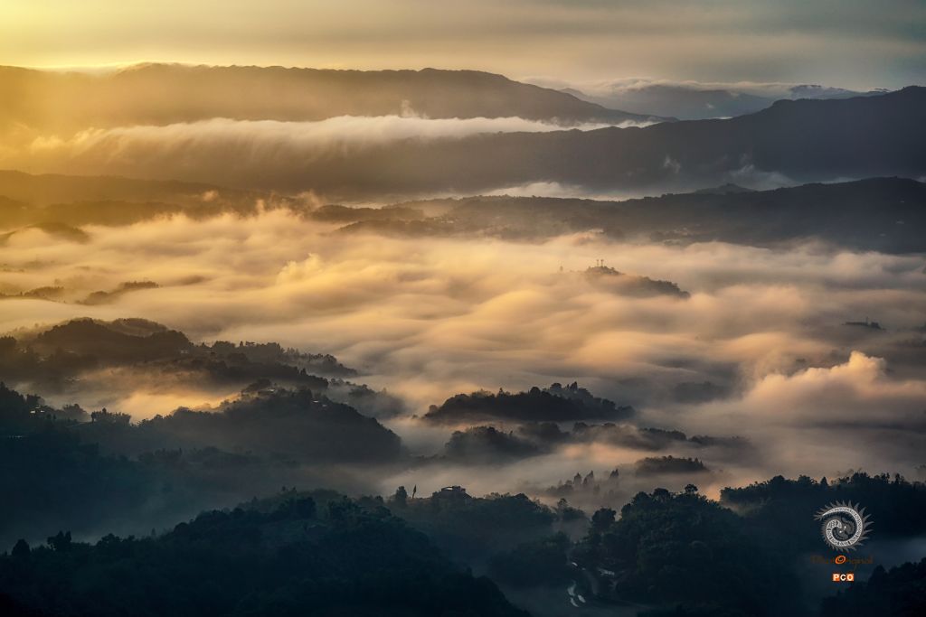 《朝霞映照茶园》
