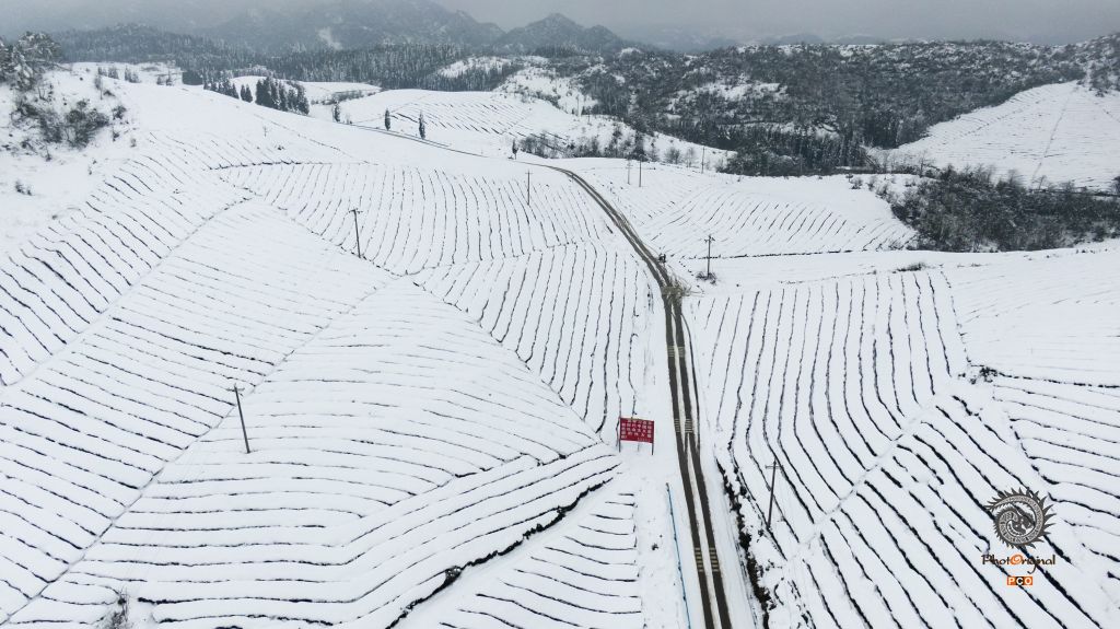 作品摄于2020年1月瓮安青山茶园。茶山披上银装,美丽如画。
