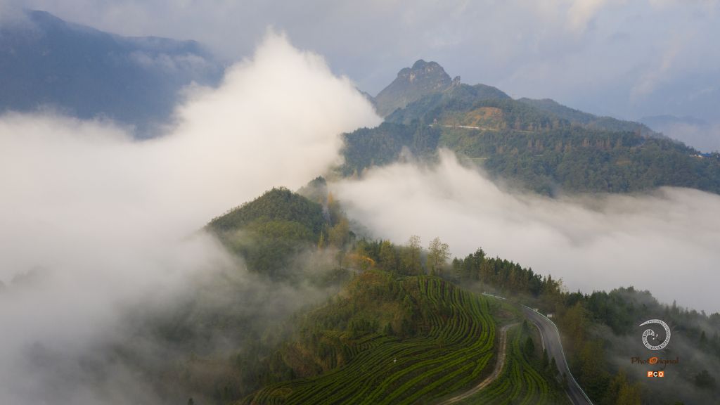 都匀螺蛳壳茶山雨后的早晨茶山上云雾袅绕,犹如仙境一般