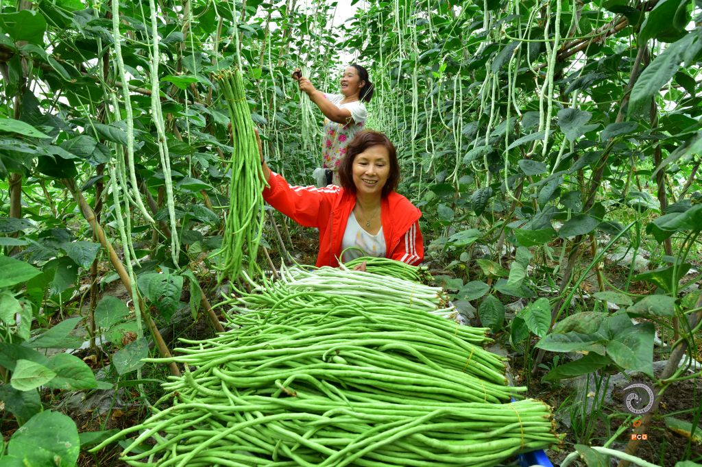 2020年8月10日,贵州省黔东南州锦屏县新化乡新化所村,村民在菜园子里采摘豇豆。 近年来,锦屏县新化乡充分发挥资源优势,鼓励农民种植蔬菜,常年轮番种植豇豆、白菜、茄子、辣椒、黄瓜等10多个品种的蔬菜,种植面积达3000余亩,蔬菜主要销售黎平、锦屏等附近县城,远销湖南、贵阳等大城市。蔬菜种植已成为当地农民脱贫致富奔小康的主打产业。