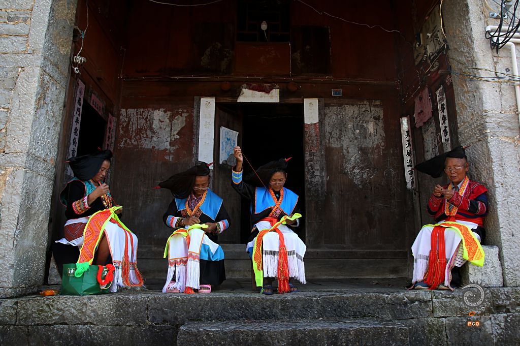 摄于贵州省安顺市江龙镇一个苗族村寨,该村的几位苗族妇女利用农闲相约在一家的家门口边唠家常边做起了刺绣活儿。苗族刺绣是当地苗族文化的重要组成部分。