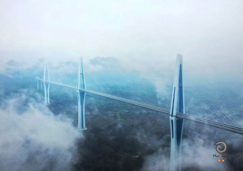 雾中的平塘特大桥,依旧壮美,更多了一份迷蒙与空灵。
