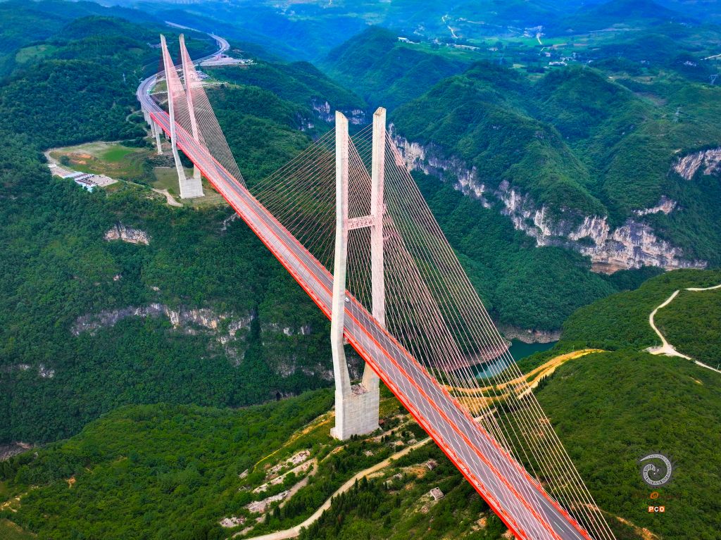 是息黔高速控制性工程,桥梁主跨580米,桥高375米,全长1280米,黔西岸索塔高248米,息峰岸索塔高236米。