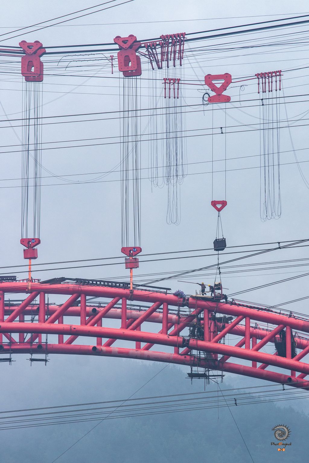2018年6月和朋友自驾,在镇远县去云台山的路上看到在高空作业的建桥人,