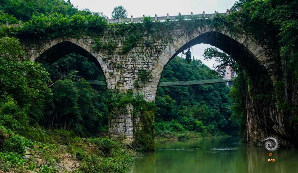 葛镜桥是明代人葛镜倾尽家财、耗时三十年时间所建。桥在绝壁之上起拱,借江心一礁石下脚,设计绝妙。葛镜桥全长51.44米,3孔,大拱高9.61米,桥面宽8.5米,高约30米,三孔跨径分别为25.62米、12.3米6.26米;三孔拱高分别为9.61米、7.9米和5.02米。葛镜桥建在绝壁千仞的麻哈江上,工程艰巨,雄伟壮观,为‘西南石拱桥桥梁之冠。我国著名桥梁专家茅以升高度赞誉葛镜桥说:“北有赵州桥,南有葛镜桥。”葛镜桥精湛的造桥技艺,让葛镜桥历经无数灾难,并经受时间长河的考验,至今依然屹立在麻哈江上,成为福泉麻哈江天然峡谷最亮丽的人文风景。