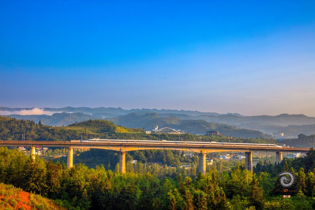 贵州省盘州市盘州站旁的高铁大桥。