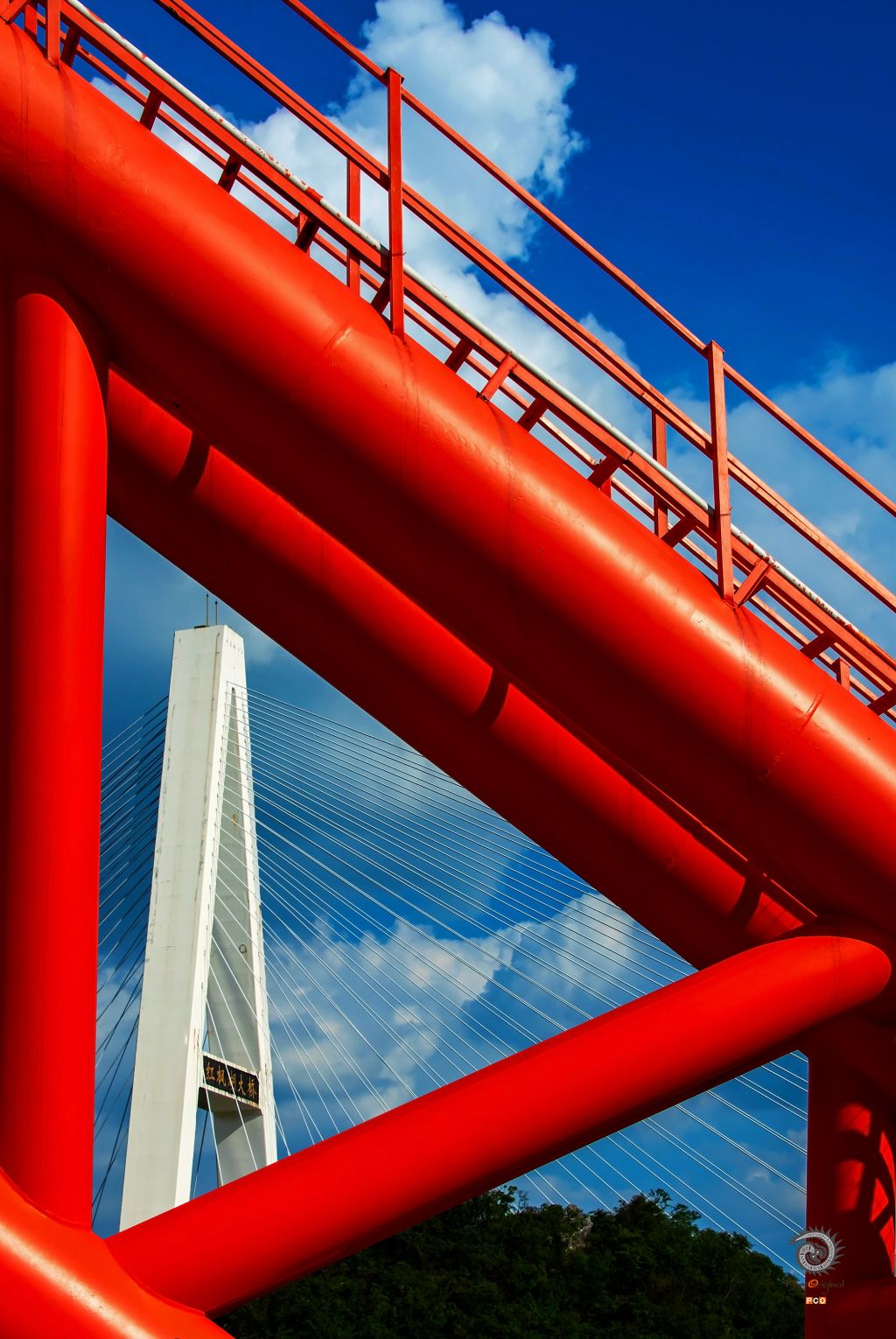 2023年7月16日拍摄于花鱼洞大桥,透过钢架结构窥视傍边的红枫湖大桥。