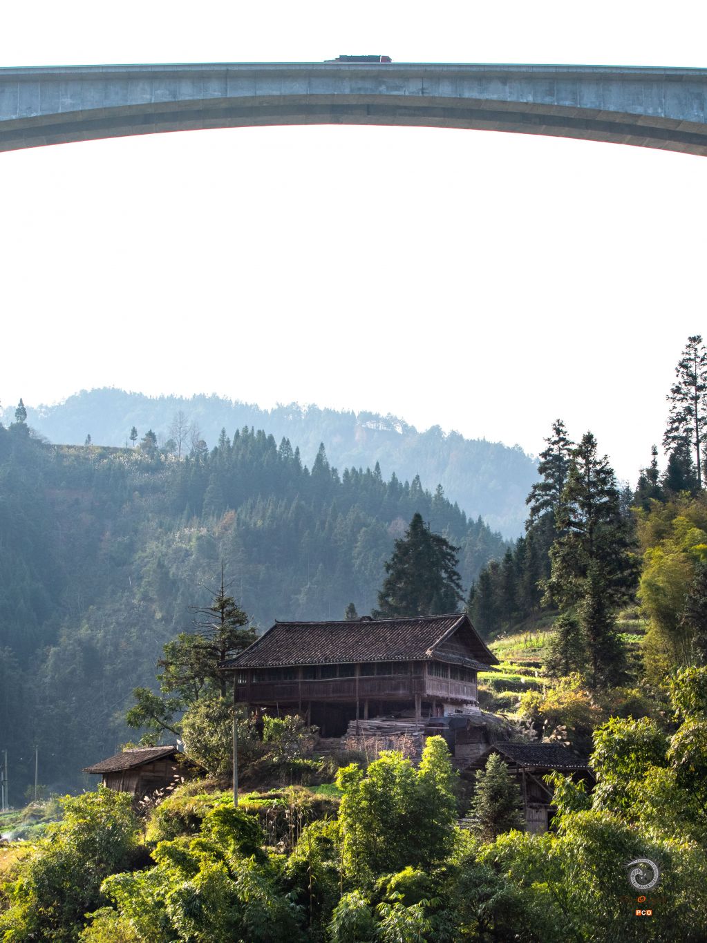 榕江乌公侗寨,高速路桥跨天而过,甚为壮观!