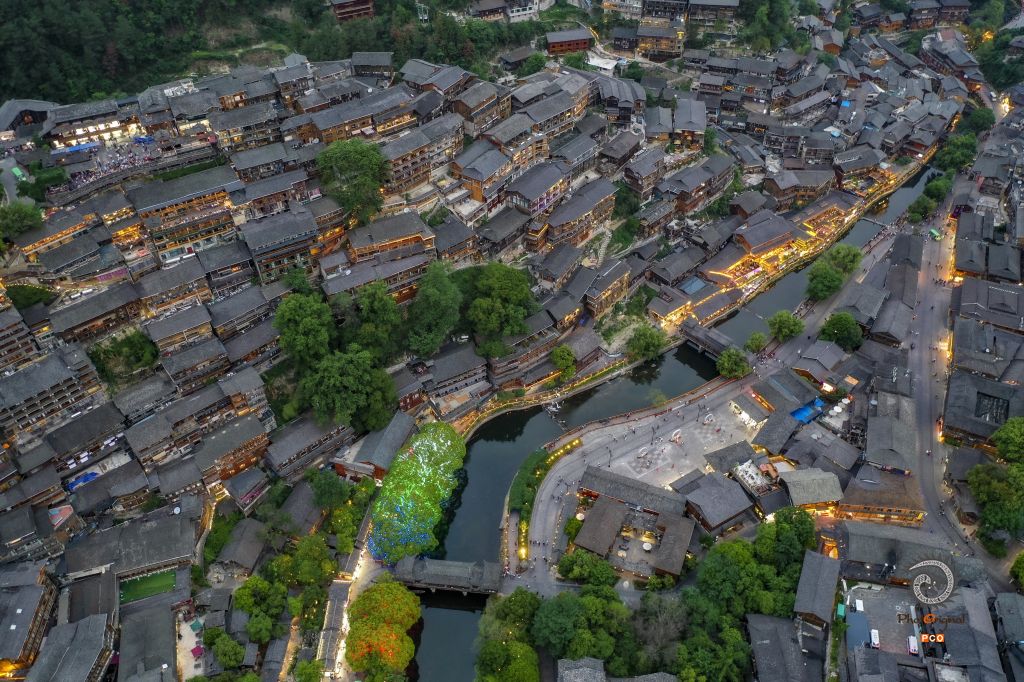 拍摄于:2023年5月18日,贵州省黔东南苗族侗族自治州雷山县西江镇南贵村千户苗寨。