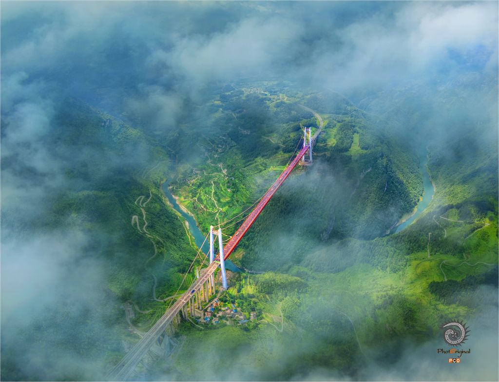 高空俯拍云端中贵州高桥,无不佩服中国建桥工业的伟大。组图分别是:清水河大桥、北盘江大桥、武佐河大桥、鸭池河大桥、抵母河大桥。