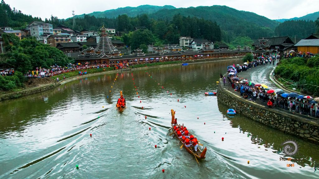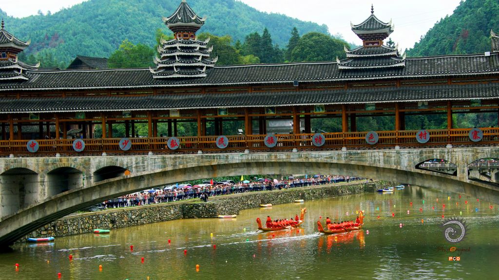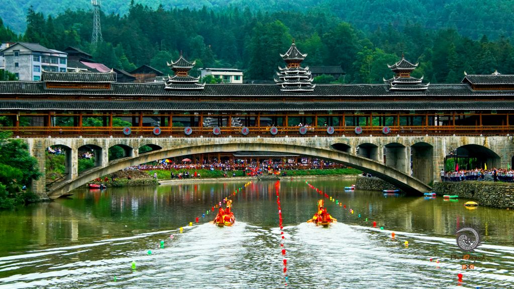 《风雨桥下竞龙舟》