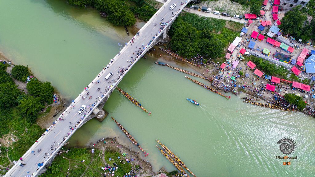 2018年7月9日,贵州老屯独木龙舟节,桥上及桥头两岸人山人海,非常壮观!