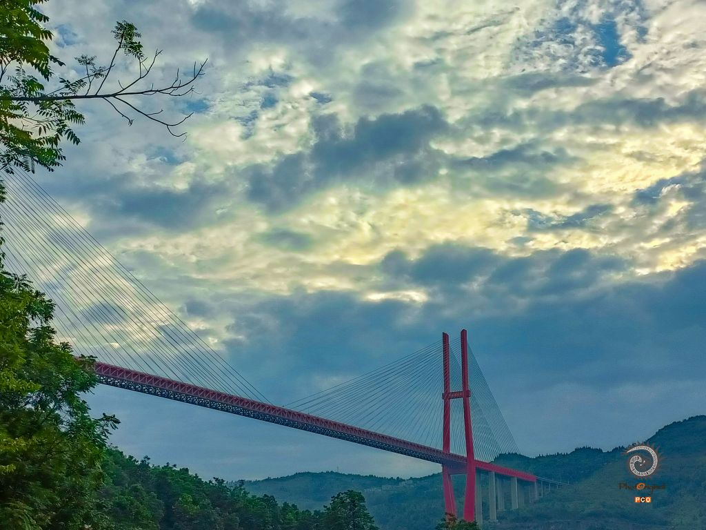 贵州贵黔高速公路鸭池河特大桥横跨贵阳、黔西两岸。大桥全长1450米,主跨800米,是目前建成的世界最大跨径钢桁梁斜拉桥,创世界山区斜拉桥之最。
