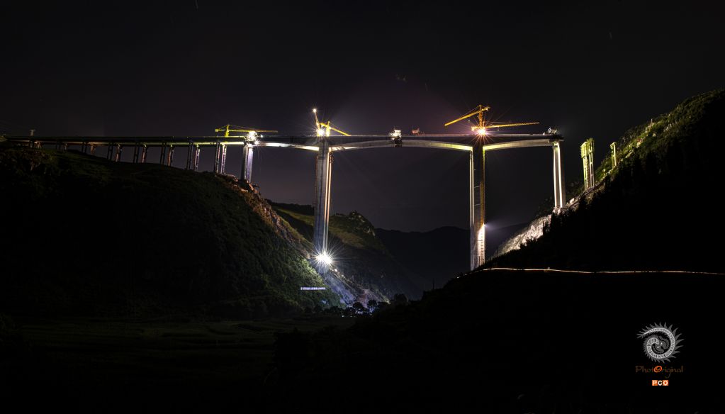 2016年8月21日,坚持24小时施工的盘兴高速公路下平川特大桥。