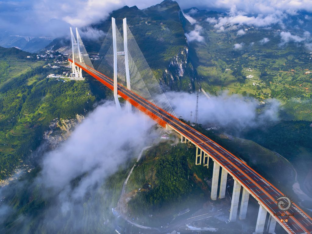 贵州、云南两省合作共建的垂直高度565米,相当于200层楼高的世界第一高桥杭瑞高速北盘江大桥-杭瑞高速贵州省毕节至都格(黔滇界)的北盘江大桥于2016年12月29日通车 。两岸居民历史上互通往来,要翻越3座山头,走40公里山路,才能到达对岸,都格镇龙井村从去对面山头的集市要走3小时山路。大桥通车后,距离近了,云南宣威市区至贵州六盘水的车程将从此前的5个小时左右,缩短为1个多小时。 2018年5月,北盘江大桥荣获第35届国际桥梁大会古斯塔夫斯金奖。 2018年9月,北盘江大桥获吉尼斯世界纪录认证 。