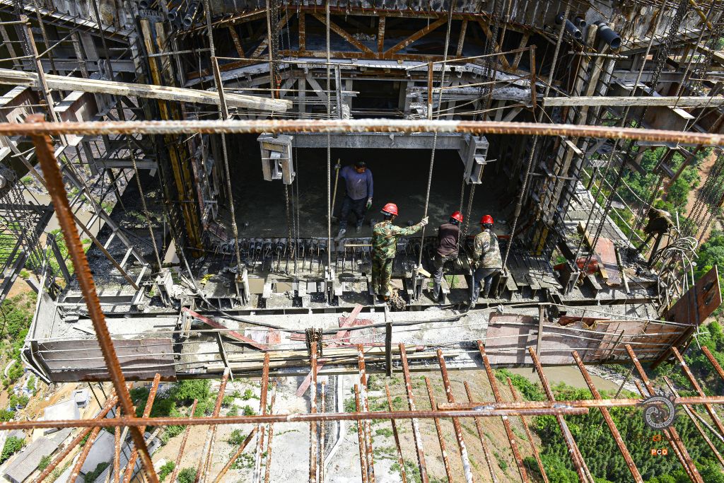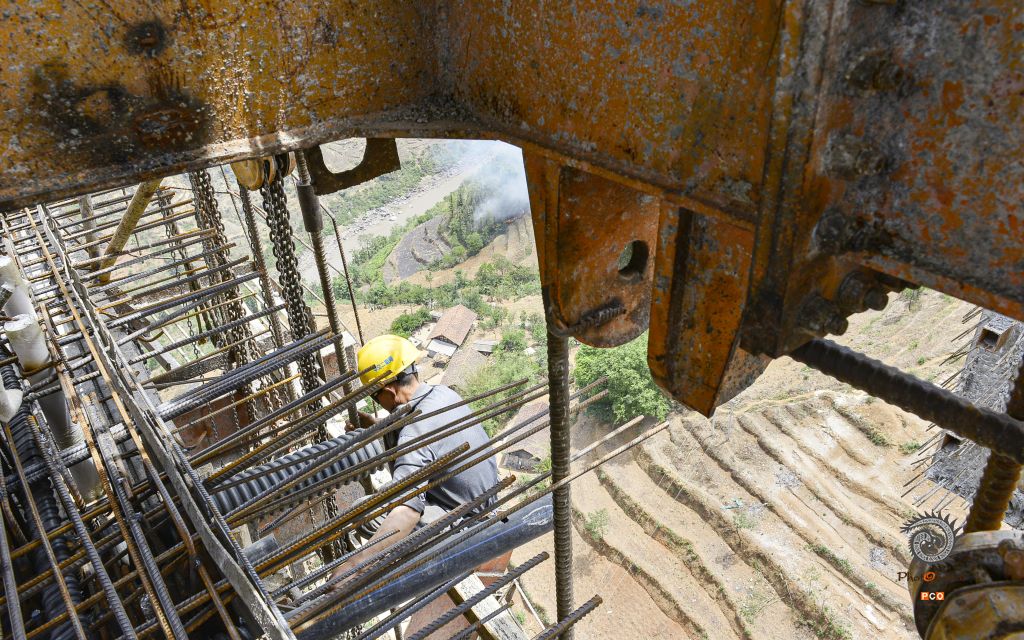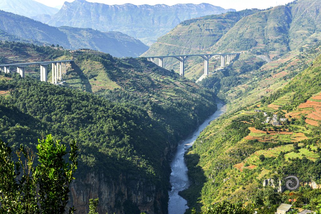 水盘高速北盘江特大桥位于水城区发耳镇和营盘乡之间,为预应力混凝土空腹(斜腿)式连续刚构,是当时国内跨度最大的混凝土连续刚构桥,也是世界上跨度最大的空腹式连续刚构桥,主跨290米,全长1261m,最大墩高170m,于2013年5月31日顺利合拢,2017年4月获第十四届中国土木工程詹天佑奖。 图01:2013年4月22日,民工进行护栏施工; 图02:2013年4月22日,民工在“桥洞口”作业; 图03:2013年4月22日,午饭后,一位民工小心翼翼地下到作业面准备工作; 图04:2013年4月22日,即将合拢的桥墩; 图05:2013年4月22日,大桥英姿初现; 图06:2013年10月25日,北盘江特大桥和望龙包特大桥远眺; 图07:2013年4月22日,大桥下喘急的北盘江; 图08:2013年4月22日,施工人员居住的临时工棚和桥下的村寨; 图09:2013年4月22日,一名技术员在最高桥墩上眺望北盘江流向的远方; 图10:2013年4月22日,参加桥墩施工的民工,他们都是附近乡镇的村民。