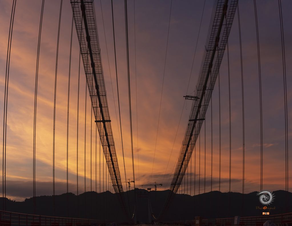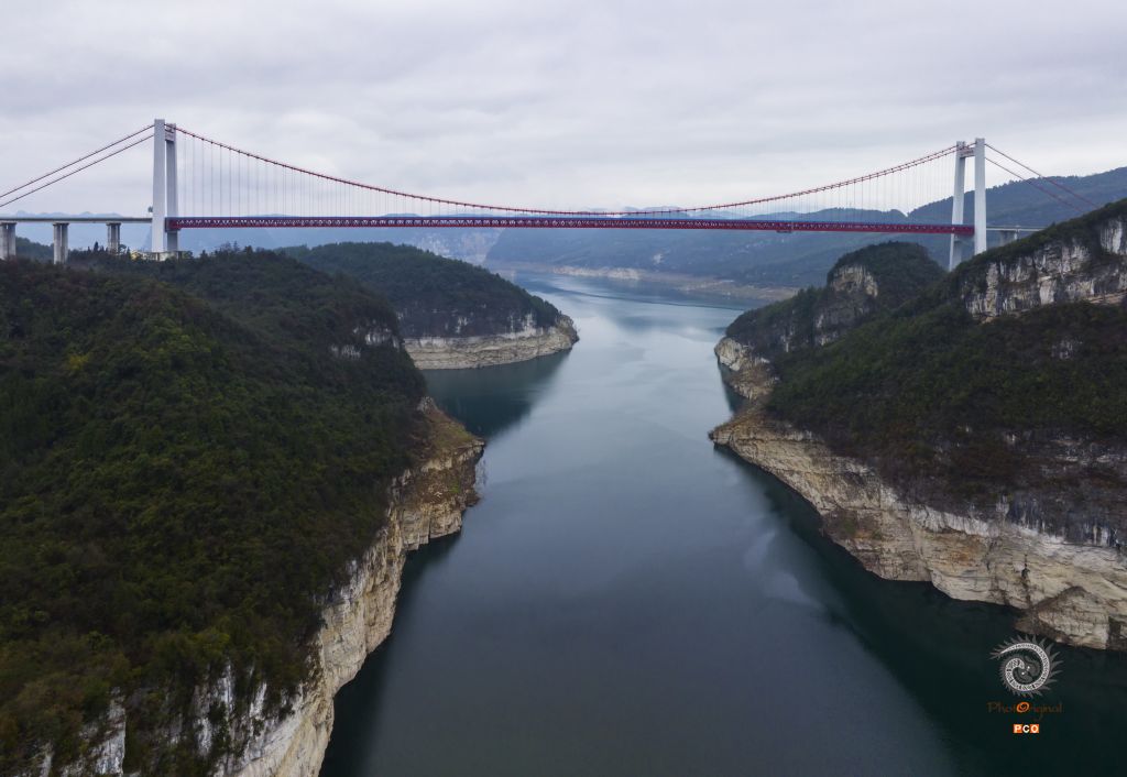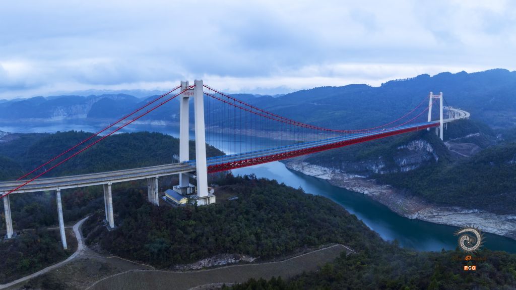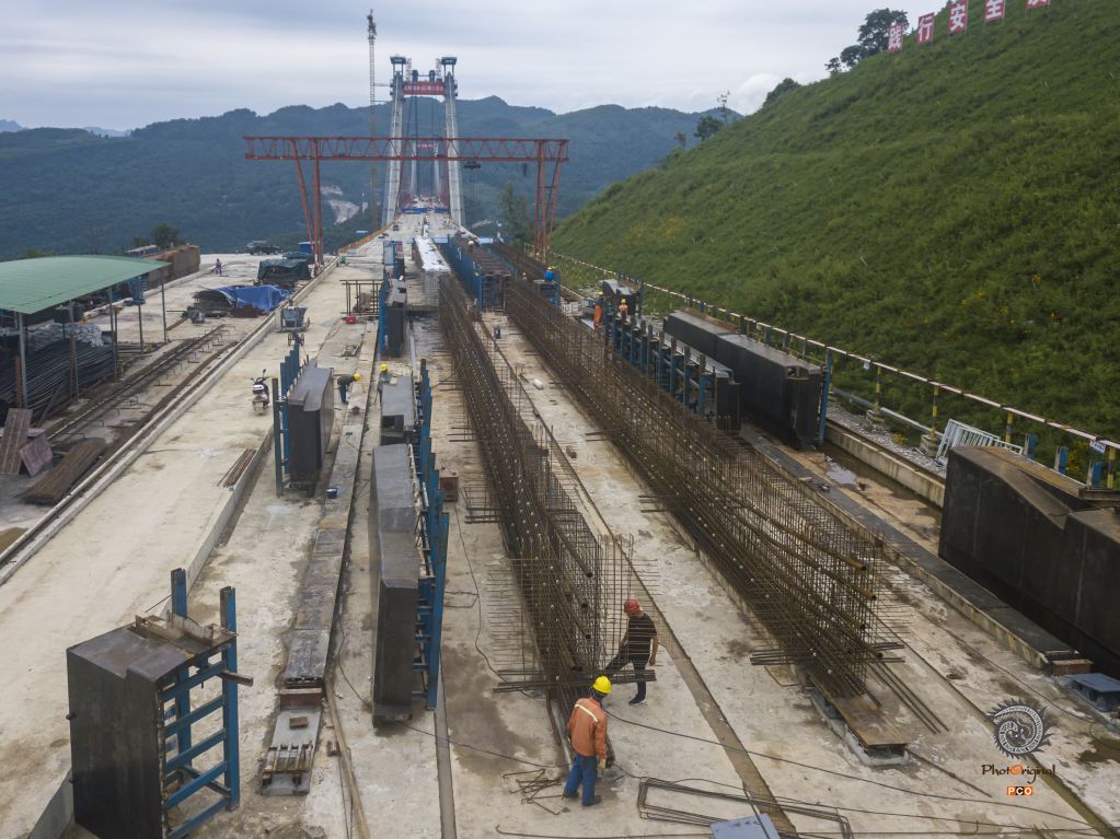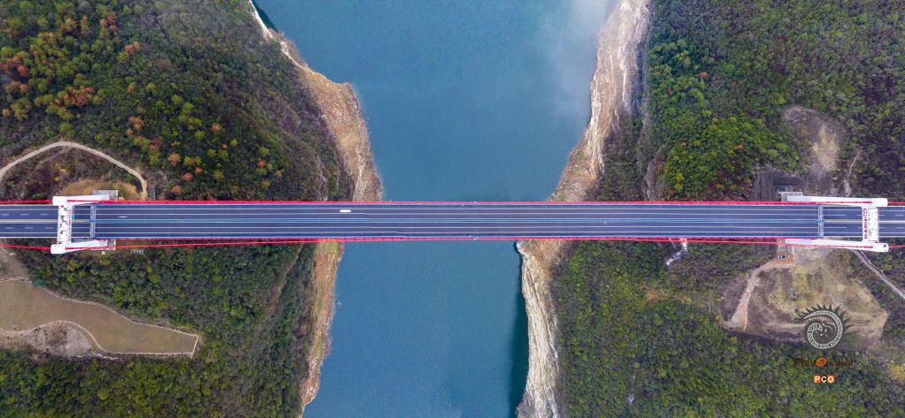 飞龙湖乌江大桥是遵余高速的控制性工程,全长1.24公里,为主跨为680米的钢桁梁悬索桥,主桥钢梁采用正交异性桥面板与钢桁梁拼装后整体吊装的施工工艺,系国内首例。 遵余高速是成渝经济区和黔北经济协作区南下珠江三角洲、北部湾经济区最便捷的一条高速运输大通道,起于余庆县境内江瓮高速余庆枢纽,线路由东向西途经余庆县、湄潭县、瓮安县,最后于遵义市播州区接入贵遵复线冷水坪枢纽。