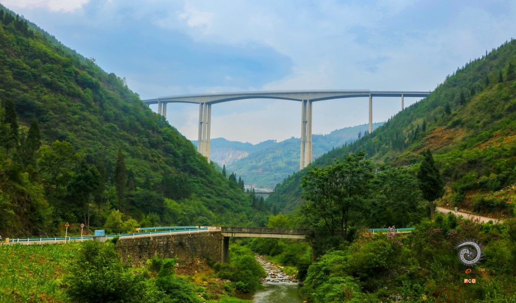 在贵州省盘州市英武镇朱昌河这段峡谷的小河上从古到现在建了大大小小不少的桥,这里是古代贵州入滇的主要通道之一,近现代入滇也是从这里通过的,这段河上有建于明朝的迎宾桥、抗战时期建的公路桥、320国道线朱昌河石拱桥,公路钢架桥,沪昆高速公路大桥,沪昆高速铁路桥和因建水库即将消失而改建的320国道上的新桥等。
