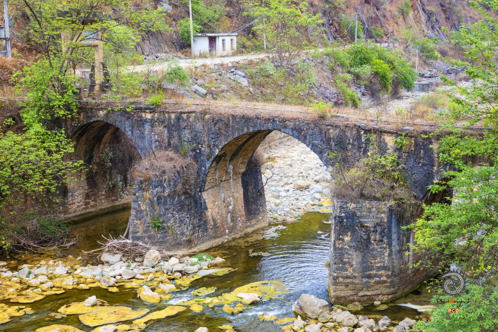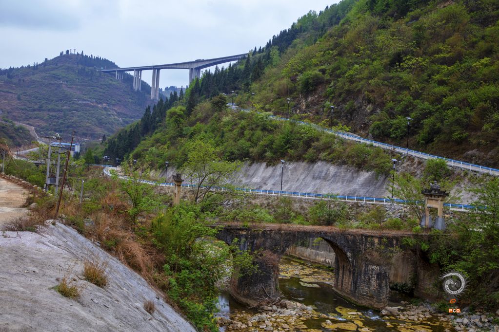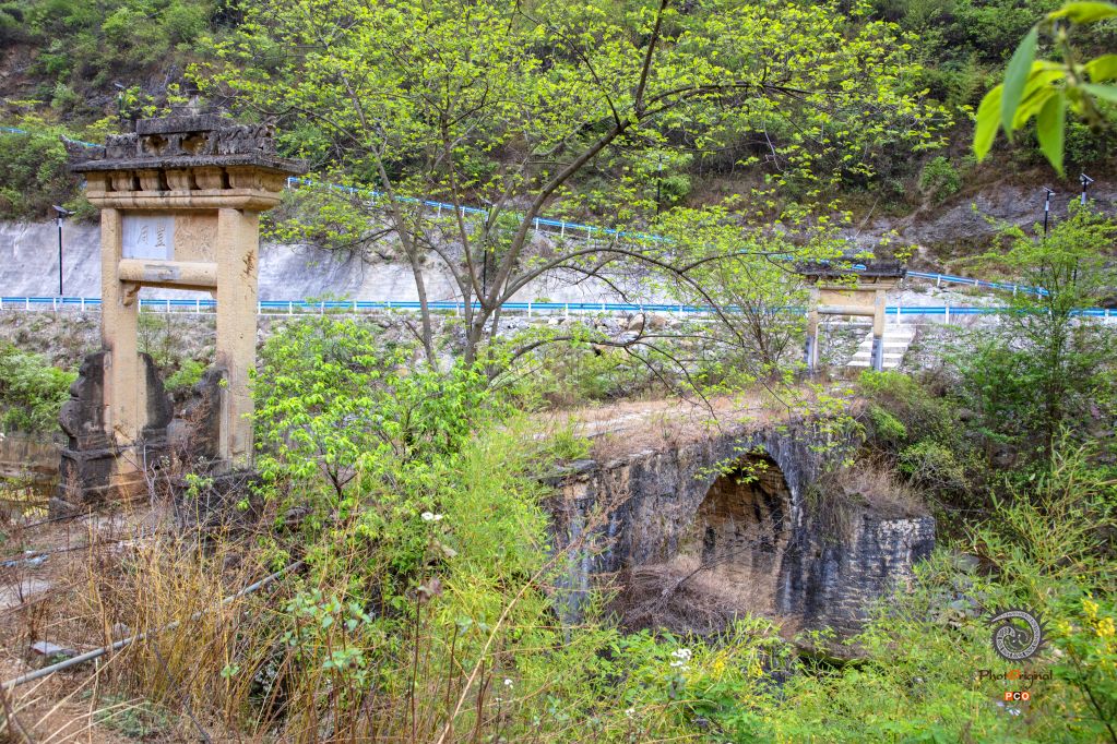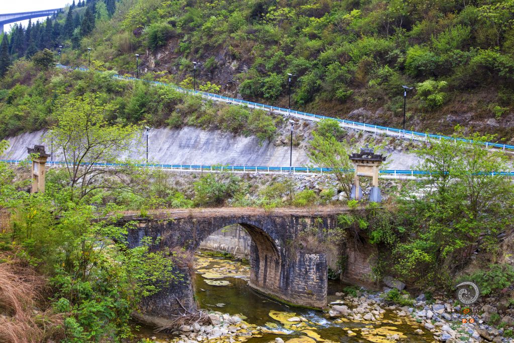 在贵州省盘州市英武镇朱昌河峡谷内有一座古迎宾桥,这里曾经是黔入滇池的古驿道,这座桥上在明朝前过河的桥是用藤和竹竿建成的桥,当地称之为软桥,桥边建了一个哨卡,称为软桥哨到如今,明朝年间用石头修建了这座两头版坊的石拱桥,当地人俗称为迎[宾桥。抗战时期在这座桥下游3-400米左右的地方修建了老320线,解放后320线国道解直从这座桥后面的半山腰经过到如今,之后在桥前面不远处修了沪昆高速公路、高铁朱昌河大桥。从修通320线后这座桥就很少有人经过了,特别是解放后320线改道后就无人从这座桥上经过了,只能荒废在这深山峡谷之中,后因山上山石滚下打坏了部分牌坊,经当地政府部门重新修补保存至今。
