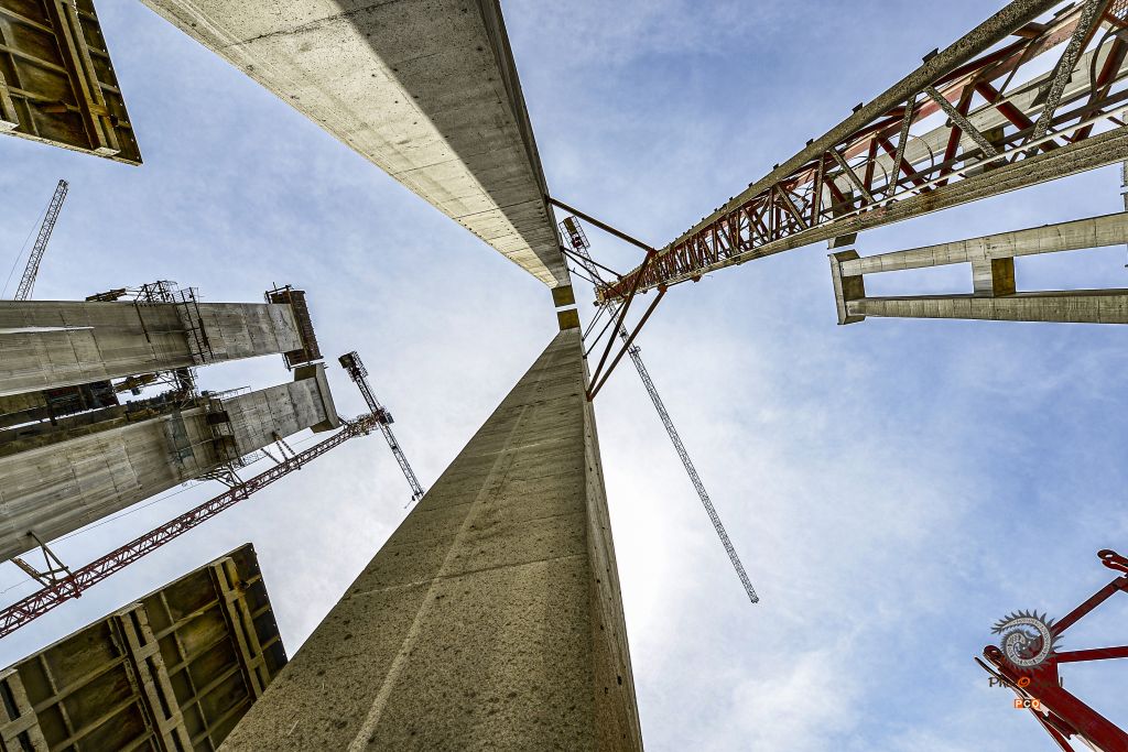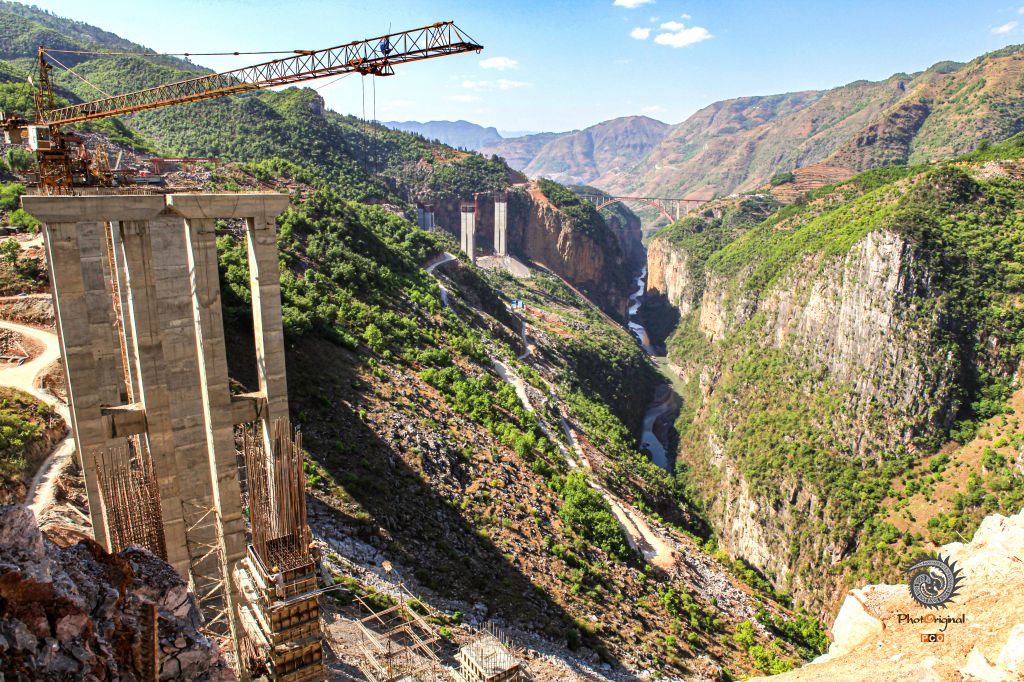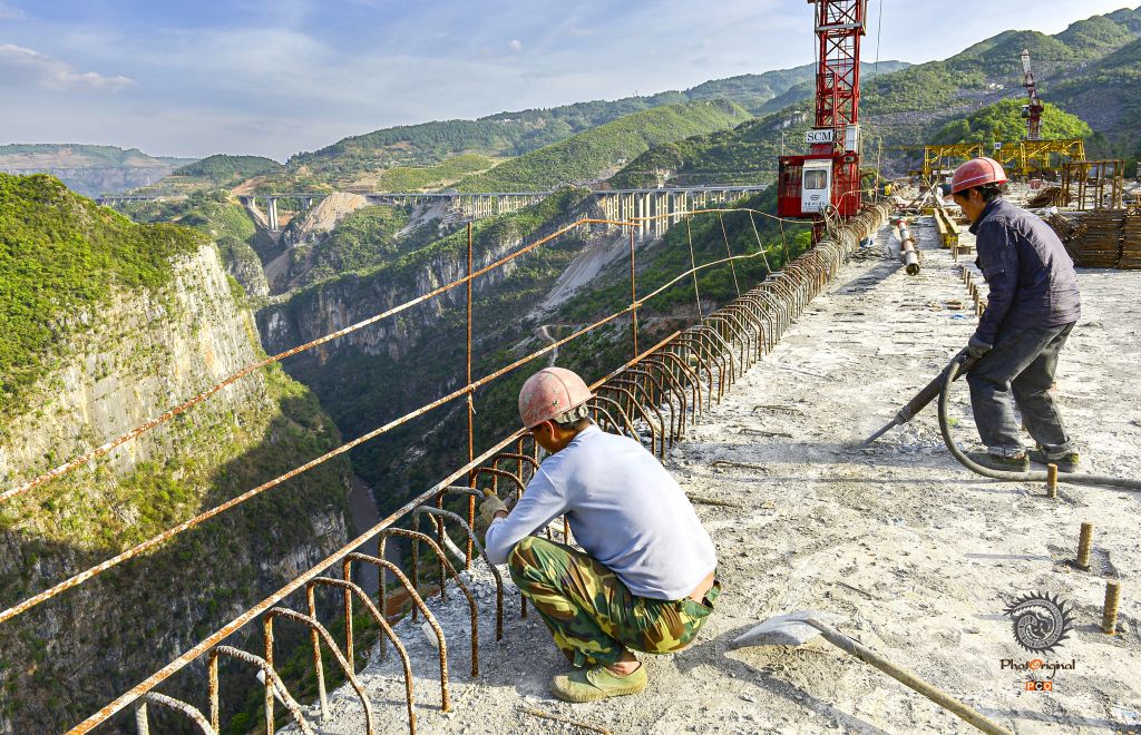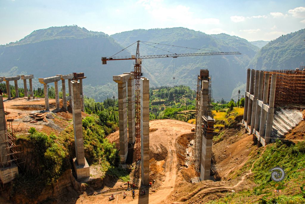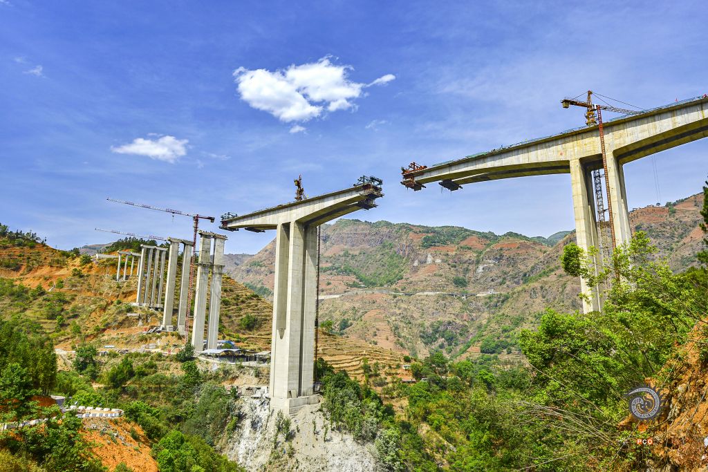 水盘高速经过的北盘江大峡谷地形陡峭、地质复杂,施工难度大,不是桥桥相连,就是桥隧相连,并多处与水柏铁路相交或靠近。经过筑路工人4年的艰苦奋战,终于在峡谷中筑起了这条连接杭瑞高速与沪昆高速的大动脉。 图01:2011年5月9日,施工中的三家寨大桥; 图02:2011年5月9日,施工中的新寨大桥; 图03:2013年4月22日,施工中的望龙包特大桥; 图04:2013年4月22日,北盘江特大桥雄姿初现; 图05:2013年4月22日,高耸入云的桥墩; 图06:2011年5月10日,桥梁多处与水柏铁路“交集”; 图07:2013年4月21日,桥隧相连也是其显著特点; 图08:2013年4月22日,北盘江特大桥下喘急的江水; 图09:2013年4月22日,民工在老鹰岩大桥上施工; 图10:2013年4月22日,北盘江特大桥建设者群像; 图11:2011年5月9日,峡谷闷热潮湿,施工人员每天必须大量饮水; 图12:2013年10月25日,北盘江特大桥和望龙包特大桥远眺。