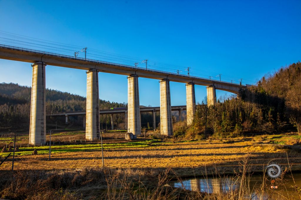 高铁桥旁的高速公路桥