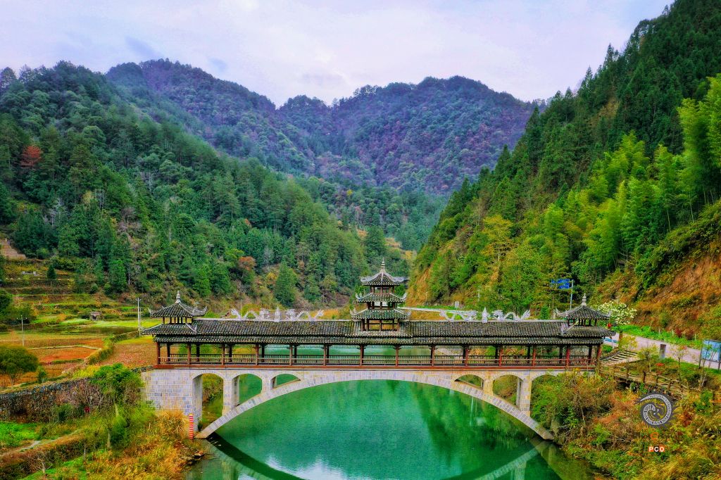 贵州小丹江苗寨,一湾碧水,山青水秀风景优美,特色的招龙桥是苗寨的一道靓丽风景线。