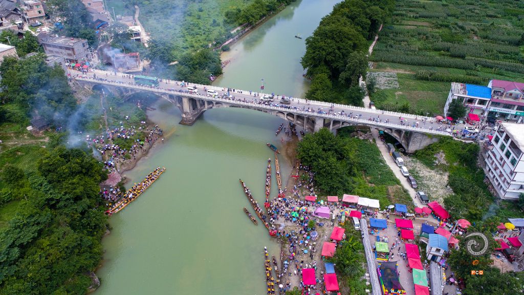 2018年7月,台江县老屯乡独木龙舟节,巴拉河大桥人山人海,热闹非凡。
